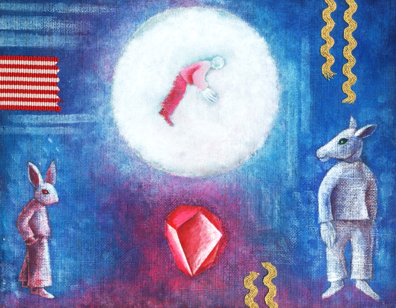 2) 周りの生地に粉砂糖をふり、半分に切ったいちごを飾る。