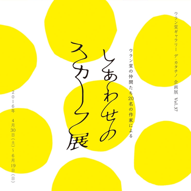 2016.4/30sat〜6/19sun ウラン堂の仲間たち20名の作家による 「しあわせのスカーフ」展 20名の作家によるスカーフとバンダナの展覧会です。 鹿いっぱいのデザインを作りました。 ぜひ見に来てください。 初日と最終日には作家をまじえてのささやかなパーティを開催します。(どなたでも参加できます) ◎Opening Party/4月30日(土)15:00〜 ◎Closing Party/6月19日(日)14:00〜 [パーティ参加料/各パーティ共] 500円/1ドリンク・フード付き